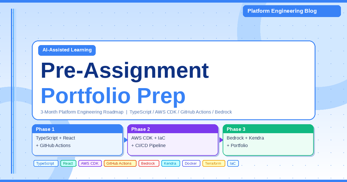 そこで試みたのが、「事前に使用技術スタックを共有してもらい、ポートフォリオ作成で準備する」というアプローチです。今回は参画予定の現場からPlatform Engineering / DevOps 領域の技術要件を事前に共有いただきました。それをベースにAIで学習ロードマップを設計し、準備を進めました。以下では、その手順と気づきをまとめます。